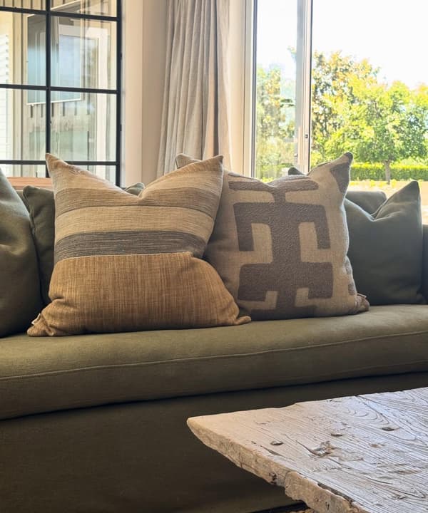 Photo: Constantine stool in Orillo Brick with Egerton sofa and G.O.A.T. cushions.