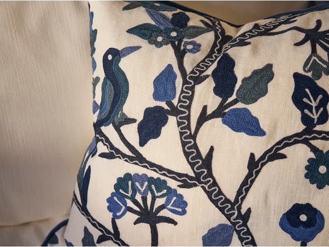Birdsong Delphinium - Poetic woodland embroidery cushion