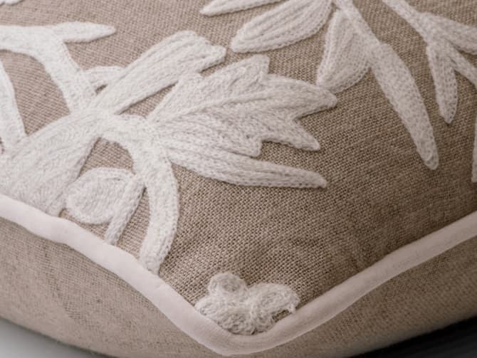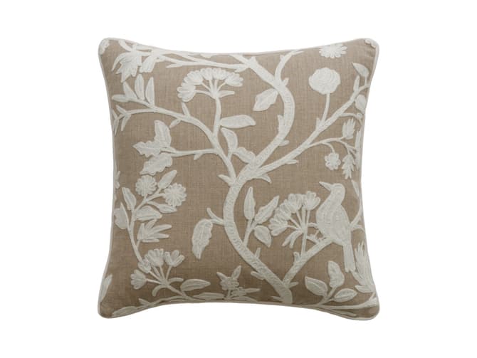 Crafted from Birdsong Ivory, this cushion presents an understated expression of medieval woodland scenes traditionally woven for Britain's great halls. The front features hand-guided embroidery of birds, branches and florals, all in soft ivory on a natural linen ground, whilst the reverse is finished in sumptuous plain linen for a clean, complementary contrast.