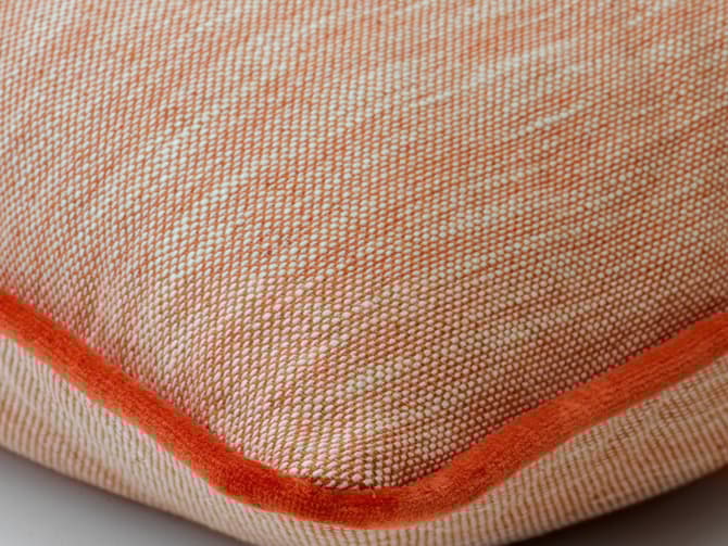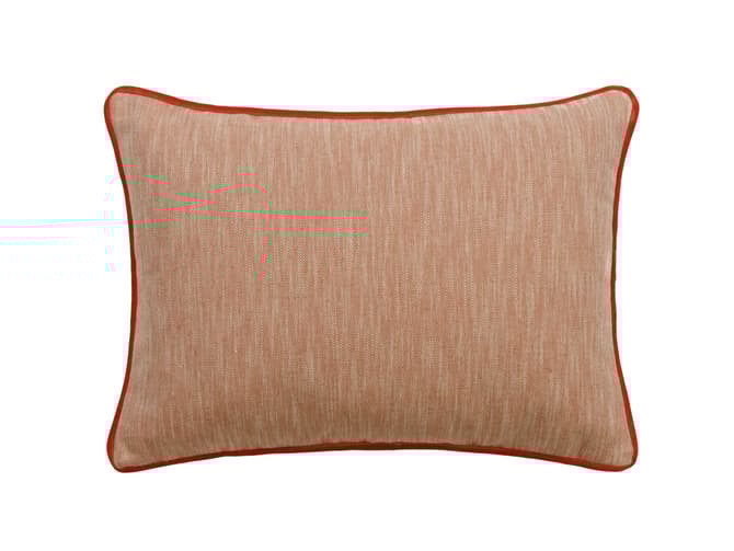 A cushion in Canvas Brick, a soulful, earthy linen that draws from the tones of clay-rich soil and sun-warmed stone, a part of our new Kit Kemp Collection. Finished in complementary Medici Raw Umber piping.