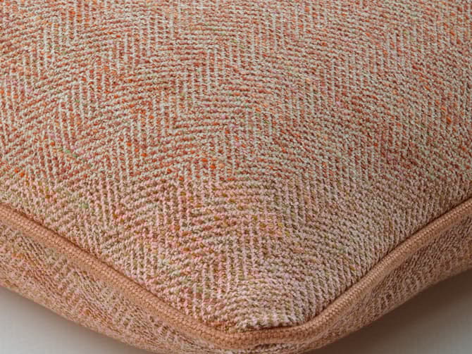 A thick and slubby weave with a subtle herringbone in a warm amaretti-inspired mix of terracotta, burnt orange, and soft beige, with subtle flecks that enhance its richness. Delphini has a spill resistent Teflon coating which makes it as practical as it is beautiful. Ideal for upholstery of all kinds, like sofas, armchairs, footstools, or scatter cushions.