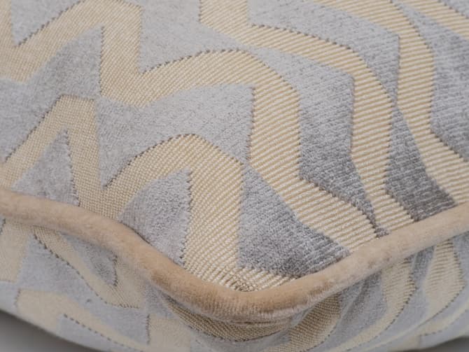 Hudson Smoke's complex grey tones create a striking visual effect, accentuated by the luxurious cut and loop pile texture. Paired with Medici Stone piping, this cushion brings an air of modern sophistication to any setting. Stuffed with our signature plush feather inners for supreme comfort.