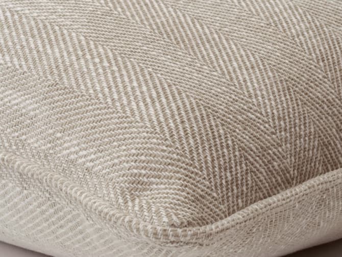 An exceptionally soft chenille cushion made from Summit Linen, a two-tone herringbone in cooling linen.