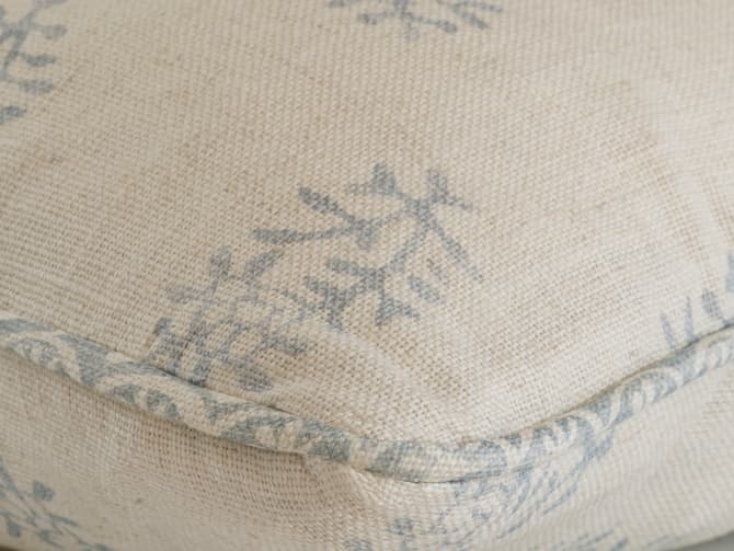 In the Iris colourway, soft blue tones are set on ivory linen, evoking the freshness of clear skies. This cushion feels uplifting and versatile, perfect for brightening sofas, chairs, or beds while blending seamlessly with both contemporary and classic interiors. It layers beautifully with plains, stripes, and larger-scale prints, bringing balance and variety to a scheme without overwhelming it.