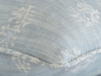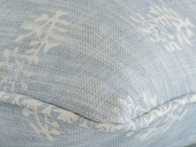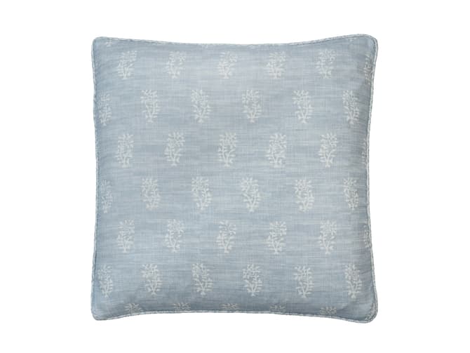 In the Sky Blue colourway, pale blue tones are set on ivory linen, evoking the freshness of an early summer morning. This cushion feels uplifting and versatile, perfect for brightening sofas, chairs, or beds while blending seamlessly with both contemporary and classic interiors. It layers beautifully with plains, stripes, and larger-scale prints, bringing balance and variety to a scheme without overwhelming it.