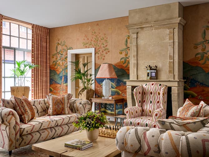 Step inside the Drawing Room at @thesoho_hotel with Kit Kemp, where the warmth and character of our Harvest Moon collection take centre stage. A joyful range of fabrics, wallpapers, cushions and throws, Harvest Moon is Andrew Martin's latest collaboration with @kitkempdesignthread.
