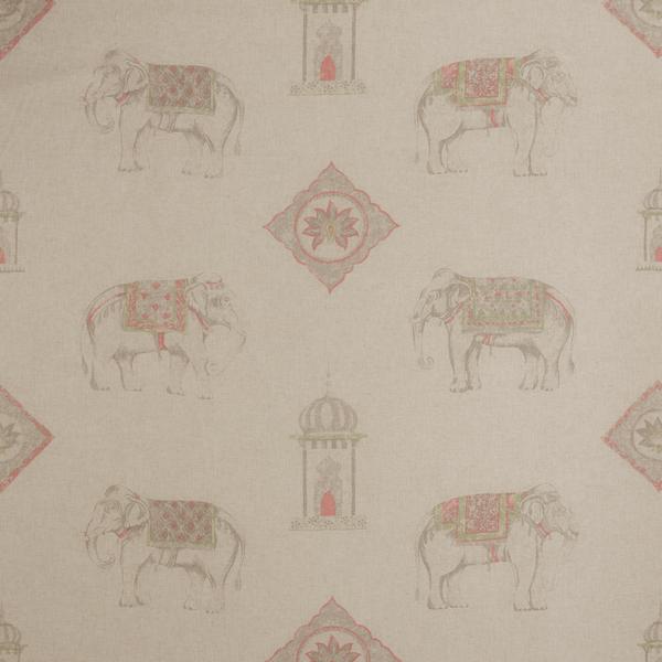 Learn moreAn earthy linen blend cloth showing large painterly elephants padding through a dusty landscape, their tails twitching in the heat at the looming Indian taj's. Bolo is a fabric full of character, billowing with romantic story that feels both age old and present. Be transported to heady India by the delicate details of the elephant's trunk and the flecks of vibrant pink and green in his saddlecloth.