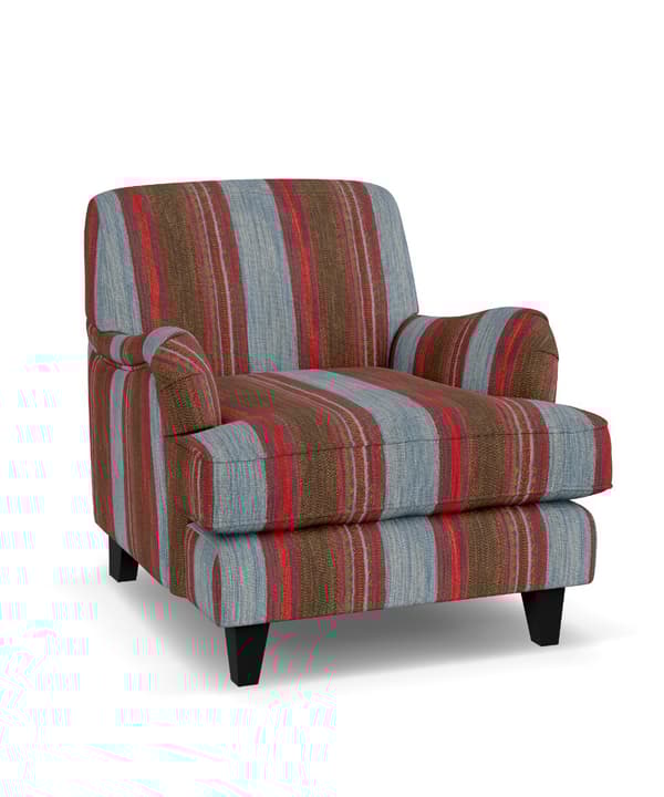 Learn moreStripes with varying widths and a running triangular motif, Las Salinas keeps you guessing. This Moroccan style soft carpet stripe fabric comes to life upholstered on chairs and sofas or as cushions. Use this colourway of vibrant coral, blue and green for a fun injection of colour.