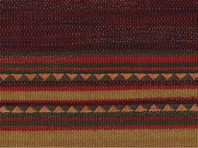 Learn moreStripes with varying widths and a running triangular motif, Las Salinas keeps you guessing. This Moroccan style soft carpet stripe comes to life upholstered on chairs and sofas or as cushions. Use this colourway of smart burgundy, red and beige for a vintage travel look.