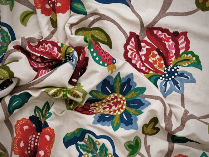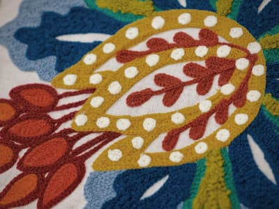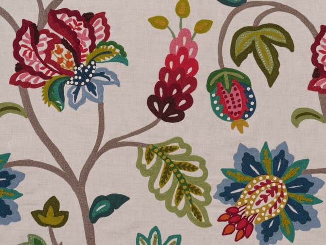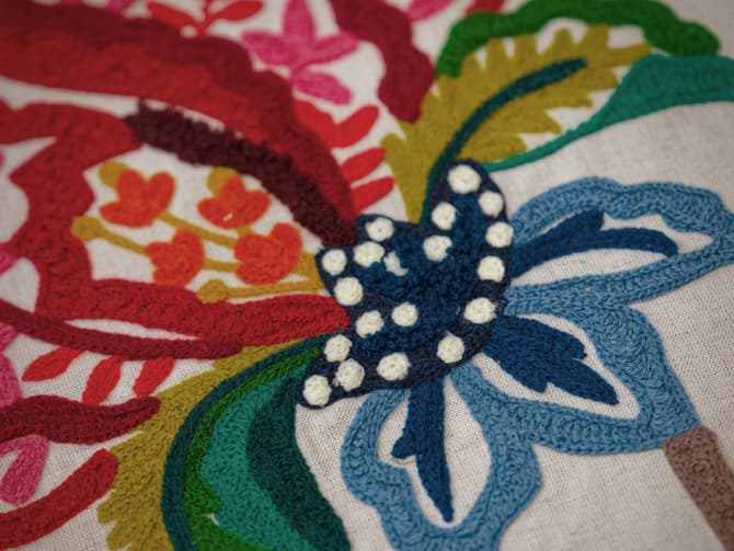 chain stitch build layers of colour and texture, creating a richly