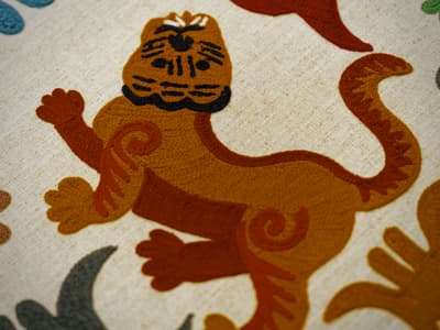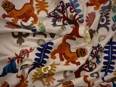 Exquisitely embroidered by hand onto a natural linen ground, the