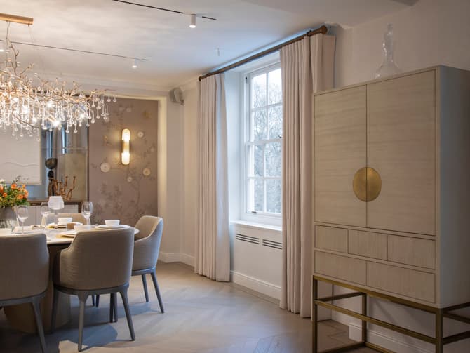 Learn moreA luxurious bar cabinet formed from clean lines with a two-tone ash finish and simple brass circle design on it's push catch doors. Inside boasts a range of features to create your own home bar including a mirrored back and LED lighting as well as shelves and spacious drawers providing ample wine and bottle storage.