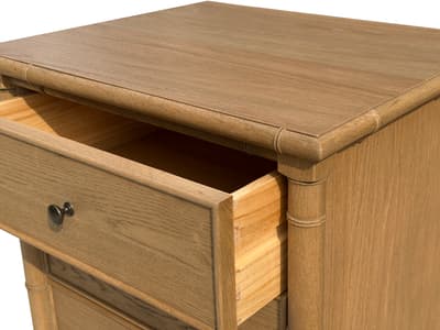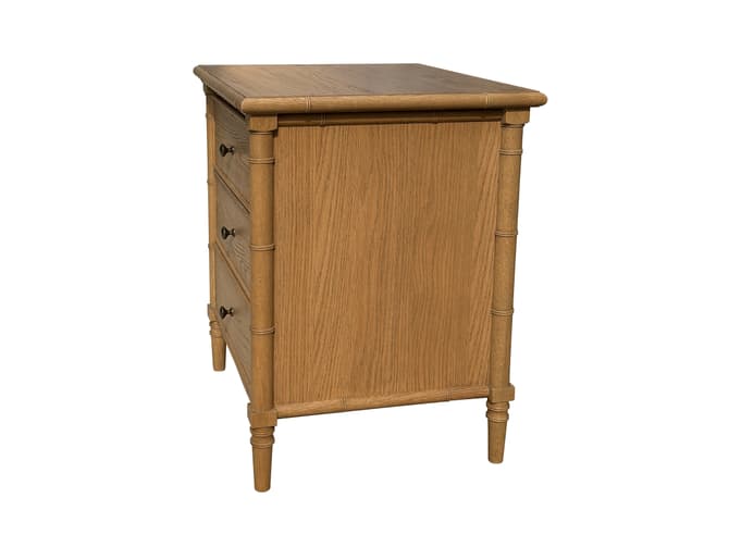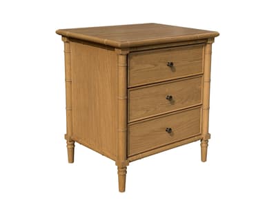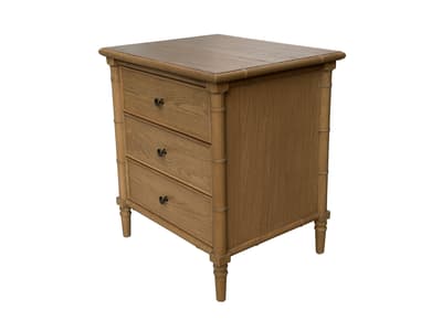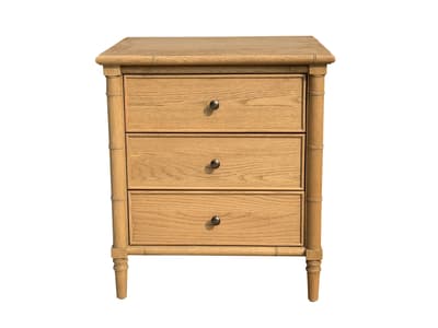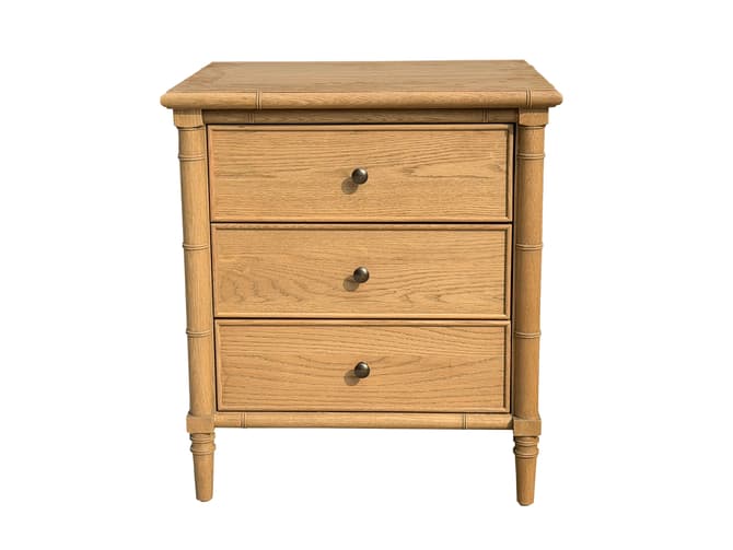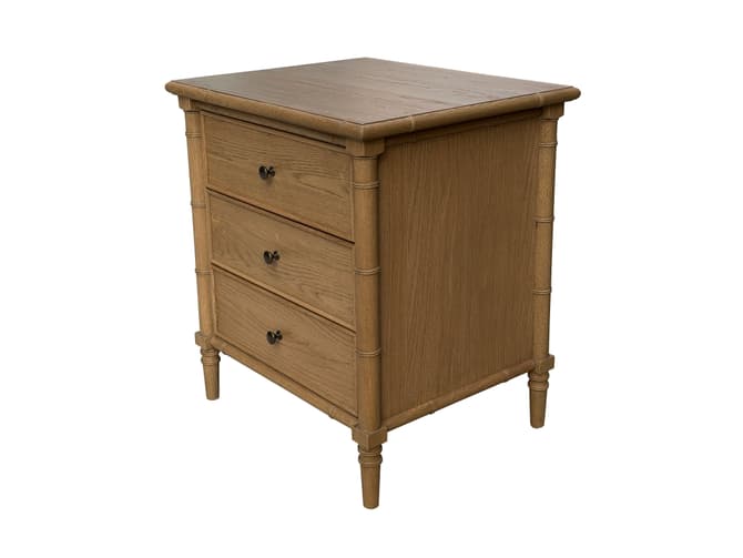 Three compact drawers offer practical storage for bedside essentials, while slender legs and subtle detailing keep the silhouette light and elegant. The classic proportions feel familiar yet unfussy, making it an easy companion to both traditional and contemporary beds.