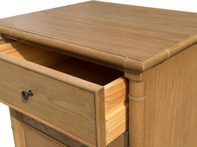 Graceful and quietly characterful, the Shelley Bedside Table brings a sense of heritage ease to the bedroom. Crafted in weathered oak, its softly aged finish highlights the natural grain of the wood, giving each piece a warm, timeworn appeal.