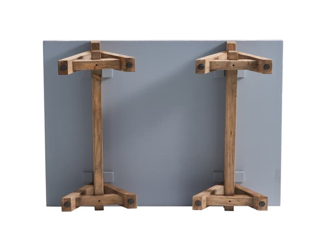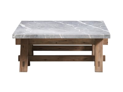 Rugged timber contrasts with cool marble in a bold, sculptural form. The base is handcrafted using century-old reclaimed pine, rescued from old homes and disused buildings.