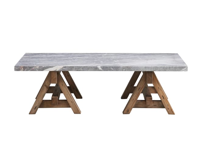 Learn moreRugged timber contrasts with cool marble in a bold, sculptural form. The base is handcrafted using century-old reclaimed pine, rescued from old homes and disused buildings. The Weathered surface, build up over decades of use, is preserved as much as possible, with splits, cracks and nicks all adding to the unique character of the wood. Topped with a slab of timeless, silver-grey marble replete with veining, polished multiple times to give a natural, authentic patina.