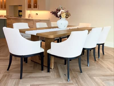 Learn moreA satisfyingly simple dining table crafted with a natural light oak wood, with okoume veneer edging, complimented by satin brass accents. Charlie is effortlessly timeless and suits a range of interiors styles and family sizes, comfortably seating eight people (not extended) and then up to twelve when fully extended with both central extension leaves added.