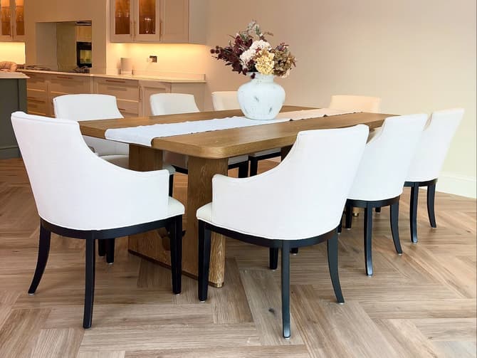 A clean, simple dining table crafted in natural light oak wood