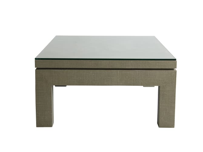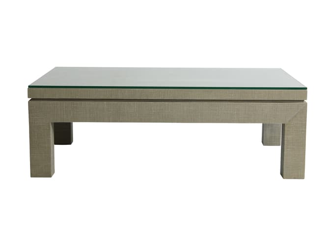 A versatile statement piece, this cement-grey coffee table with glass top oozes style and practicality.