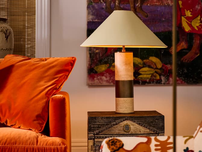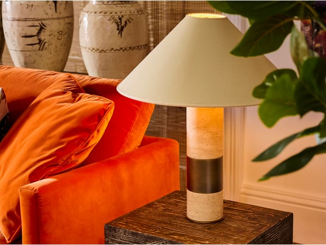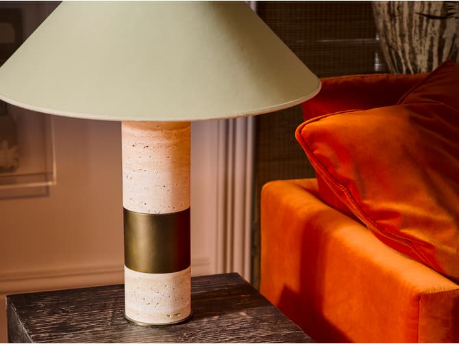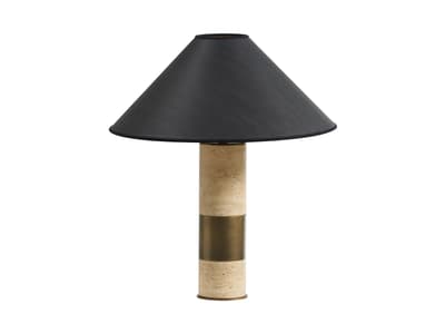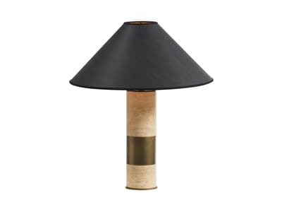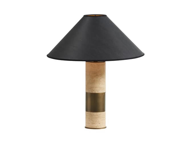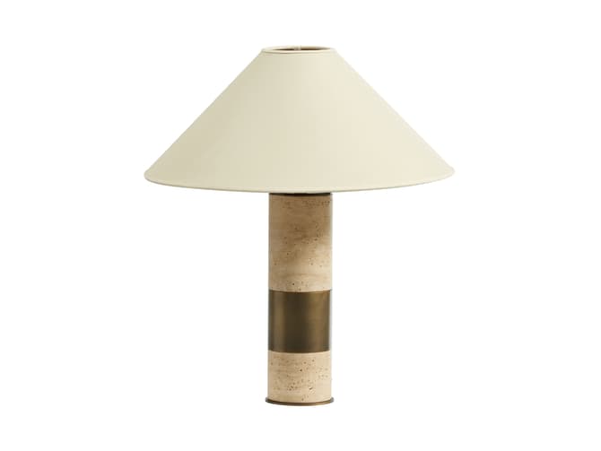 Learn moreCrafted from solid travertine, the Aura's weighty cylindrical form celebrates the beauty of natural stone, contrasting its organic texture with an aged metal stripe around the middle.