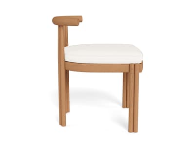 This classic, under-stated teak collection includes subtle design features such as double cylindrical legs and curved edges