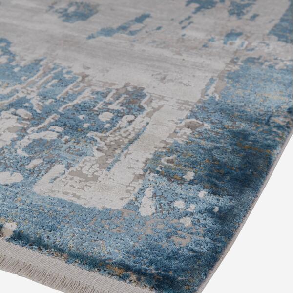 Inspired by the longstanding weaving traditions of Persia, this low pile rug in scratched blue and beige adds subtle texture and pattern to a room.