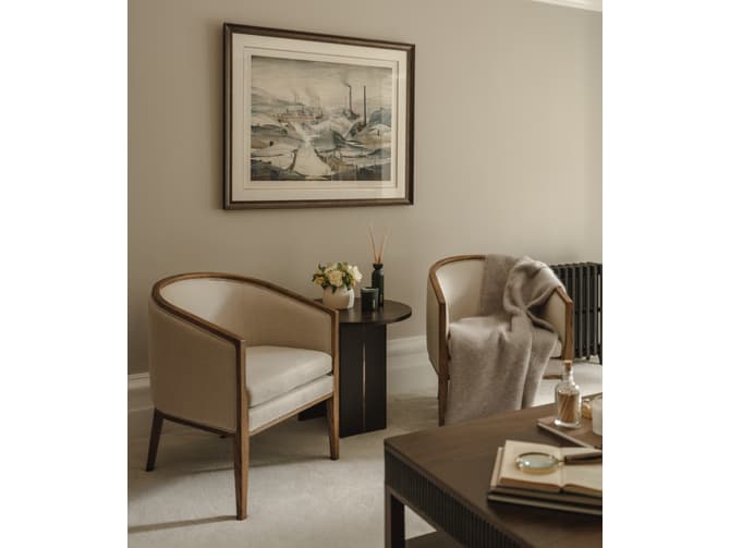 Learn moreThis versatile armchair is ready to slide seamlessly into any interior style. Inspired by mid-century design Audrey is formed from a dark stained wood frame which curves elegantly around the back of the chair. The wrap around back and sides, and seat cushion, are upholstered in a fresh natural coloured linen fabric with irregular textured slubs, contributing to its fresh, contemporary feel.