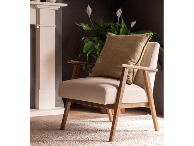 Learn moreRiding off of mid-century design, the clean, laid back lines of Rory are perfect for calm, contemporary spaces. Angled legs run off of the sleek, sloped arms of a natural ash wood frame, which is complimented by the fresh natural coloured linen fabric with irregular textured slubs.