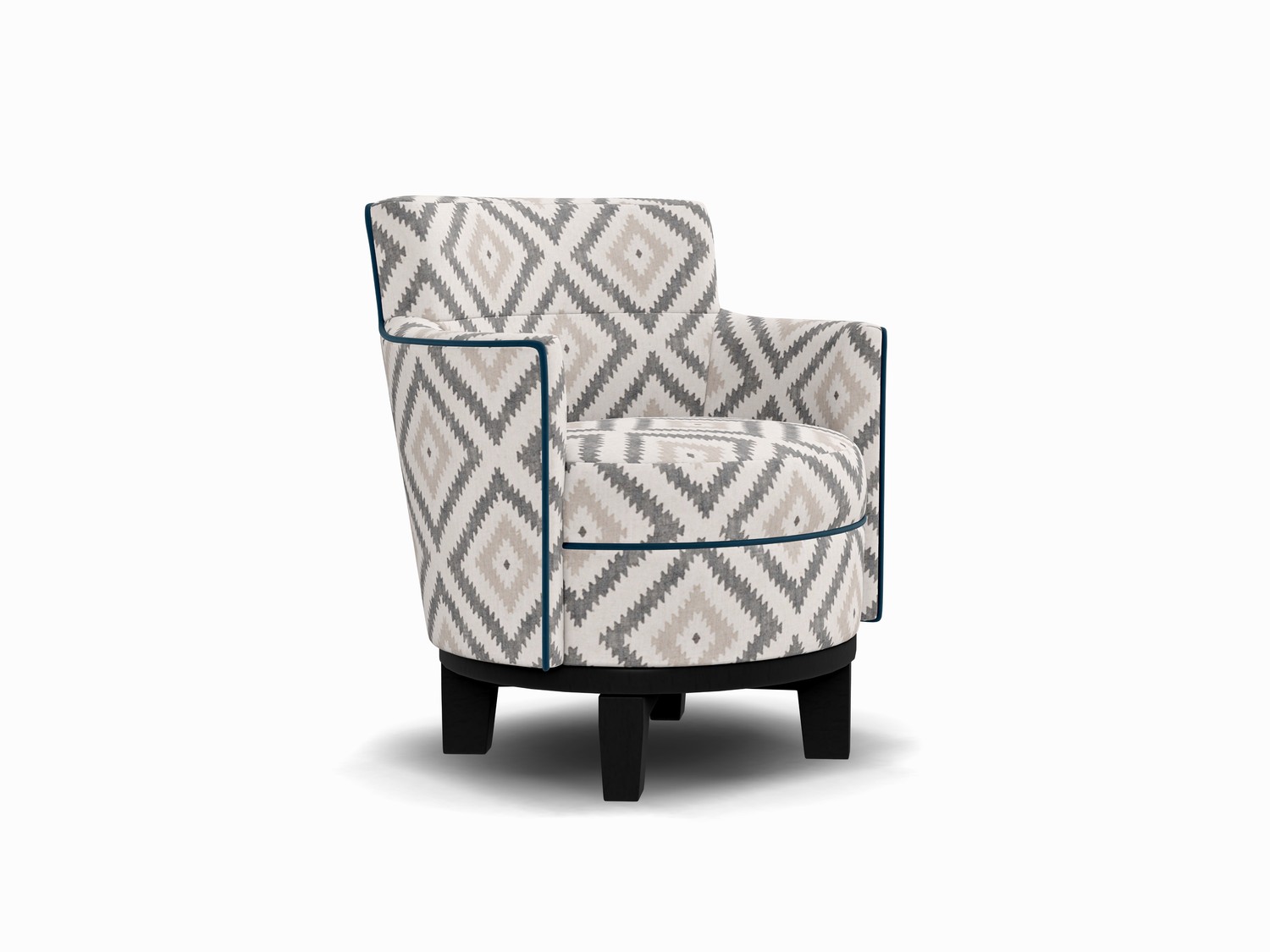 Enjoy a full 360 degree swivel on our Freya armchair, a lowoccasional chair with a circular base and curved arms.