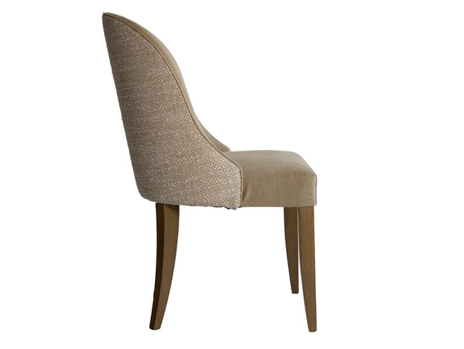 A comfortable dining chair with padded seat, full back rest and wooden legs that are slightly tapered at the back. Aldwick has been upholstered on the front in Rocco Natural, a plush heavy-weight Italian linen, with the back in Knot Rope.
