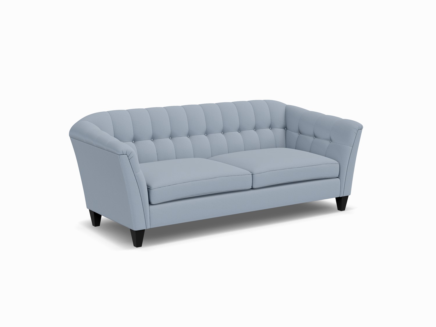 Basil is smart and sophisticated, displaying a curved back with pleated buttoned detail which creates a firm but comfortably plump back rest. With smart Ragged Oak finish legs and a feather wrapped foam seat, sitting into Basil you'll feel cosy surrounded by its high arms. Available in a cacophany of fabric options and 4 different sizes. Find out more about how it's made.