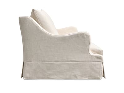 Its relaxed, loose-cover silhouette is defined by gently curved