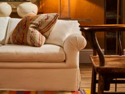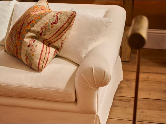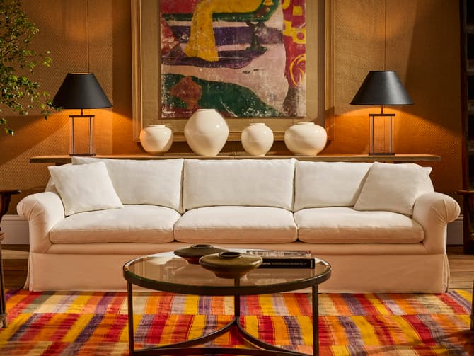 The Sutherland sofa is a mid-century inspired piece built for modern living, upholstered in luxury weathered linen.