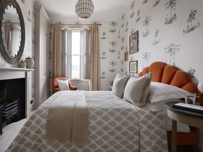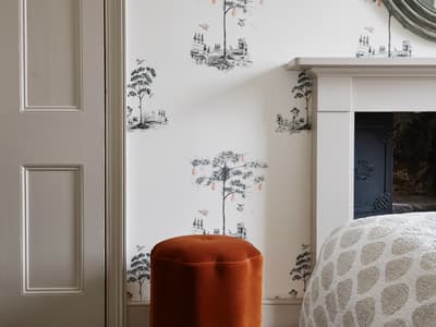 Travellers Tales and Pear Tree from the Kit Kemp Collection take their toile de juoy motif from the giant mural-style wallpaper Mythical Land. Yet with added pinks and oranges at almost neon tones, the stereotypically traditional design and age-old mythical scenes are retold for the contemporary world. Kit suggests using Pear Tree wallpaper up a staircase, as if these colourful trees will lead you up to the fresh and abundant world pictured, complete with leaping leopards and giant sliming snails.