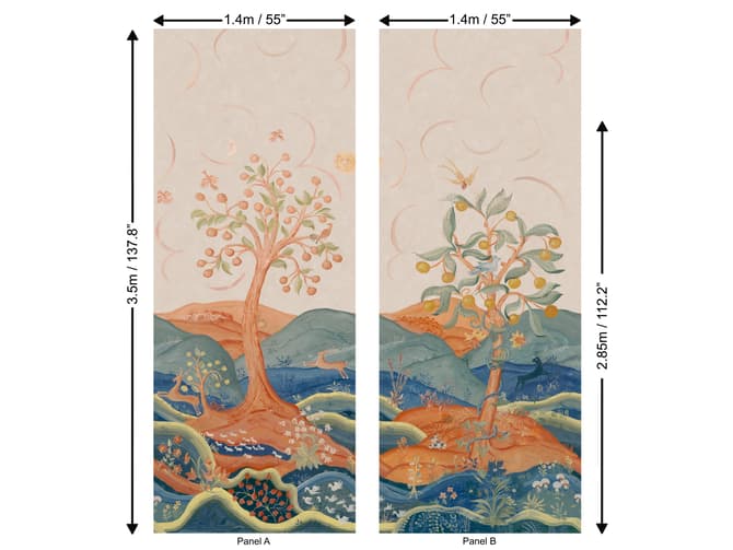 Rufus Mist, in collaboration with Kit Kemp, is a mythical mural that will add a huge amount of characther to any space whilealso telling a tale. Hand-drawn trees burst with golden fruit and curling branches, while mythical creatures roam beneath a silvered sky. This is nature, but not as we know it, it's nature through the eyes of a storyteller.