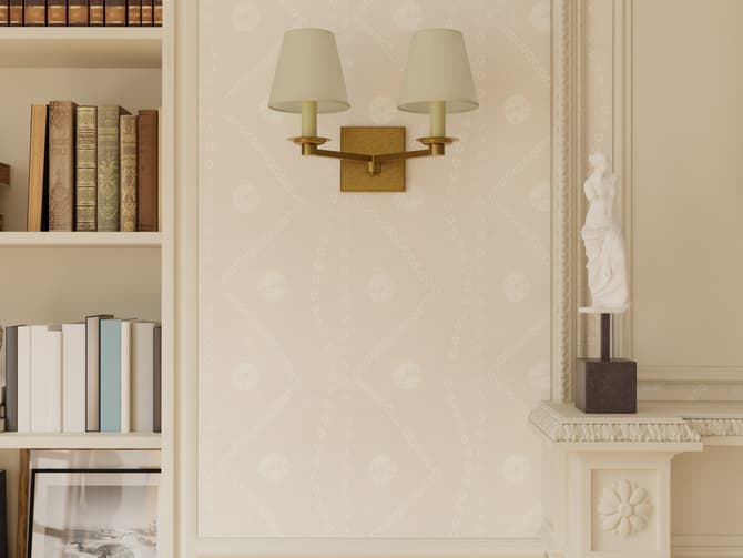 This two-tone wallpaper features a dotted zig zag design in white, against a blush toned background. Sabra Dusk is a fun and unobtrusive design that will allow statement pieces of furniture and artwork, to really shine.