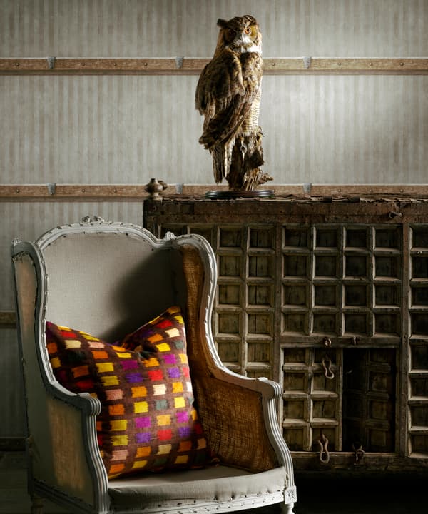 This design reimagines the composition of vintage luggage trunks. Great for dressing rooms and bedrooms, the linear pattern creates a cosy feel. Steamer adds unique personality and old-world charm to a space.